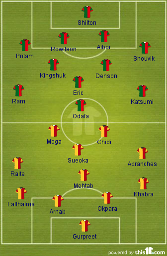 Probable Lineup (4-4-2):Ai??Gurpreet Singh Sandhu, Harmanjot Khabra, Uga Okpara, Arnab Mondal, Robert Lalthalma; Ai??Joaquim Abranches, Mehtab Hossain,Ai??Ryuji Sueoka, Lalrindike Ralte; Edeh Chidi, James Moga.