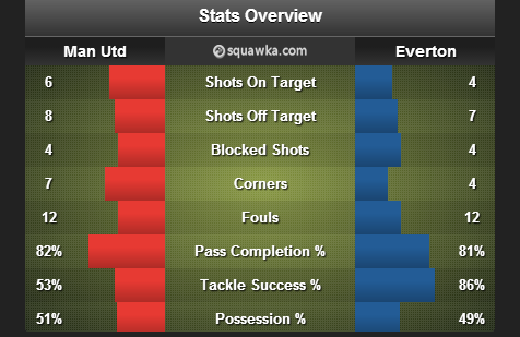 Manchester United started the first half brightly and Shinji Kagawa had a good chance to open the scoring in the 21st minute of the game. But the midfielderai??i??s shot was well saved by Howard. Ryan Giggs missed another opportunity two minutes later as his header flew wide of the far post. Just five minutes after this, Wayne Rooneyai??i??s deflected shot from outside of the box left Tim Howard flat footed, but unluckily for the England international, the ball hit the post and Everton were able to clear.