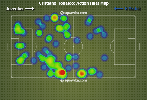 Cristiano Ronaldo just canai??i??t seem to stop scoring. The Portuguese winger scored Real Madridai??i??s first goal with a wonderful finish and set-up Gareth Bale to score the second. That was Ronaldoai??i??s eighth goal in the group stages this season and the former Manchester United winger has now equaled the record of most number of goals scored in the group stages, and he has two games in hand to decimate that record. The above heat-map depicts his movement and positioning on the pitch against Juventus.