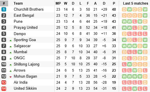 United Sikkim played host to an inform Sporting side, looking to end their campaign on a high but flattered toAi??deceive onceAi??again going down 3-0. Ai??Dawson Fernandes, who has been in impressive form in this year opened the scoring in the 10th minute and had a hand in the second goalAi??scoreAi??by Pratesh Shirodkar in the injury time of Ai??first half. Ai??Seiya Sugishita scored the third in the 91st minute fromAi??Kalu Ogba freekick to round off a 3-0 win and consolidate Sporting’s position in the top half of the table.Ai??The defeat means United Sikkim will end the League in the bottom two but with AIFF yet to decide on relegation given the confusion overAi??institutionalAi??sides, it is still not clear if they will get relegated.