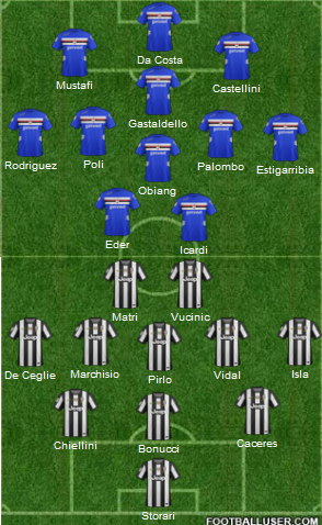 Sampdoria are likely to start in a 3-5-2 formation, mirroring Juventusai??i?? set-up. The three man defence will comprise of Serie A veteran Paolo Castellini, vice-captain Daniele Gastaldello and 21 year ex-Everton defender Shkodran Mustafi. This will be Castelliniai??i??s 4th start in Serie A this season and he is likely to have trouble containing one of the most dynamic attacking set-ups in the country. Sampdoria have the best defensive record out of top-10 teams in Serie A but they have conceded a large number of goals in past couple of months. In central midfield, Sampdoria are going to field three players who, according to rumours, are unlikely to play for them next season.