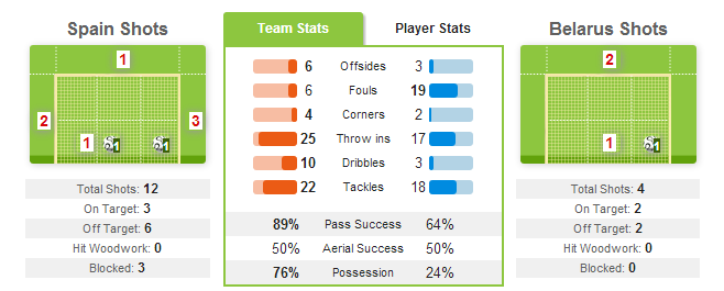 Spain 2-1 Belarus ai??i?? Victor Valdes Replaces Casillas | Highlights And Statistics