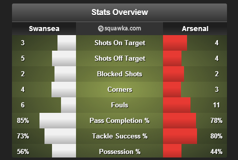 Swansea have always managed to give Arsenal a hard time on the field as the Welsh side once again made it hard for the Gunners. The first half was a scrappy affair with neither of the sides able to create too many chances. But Swansea perhaps looked the better side when they had the possession.