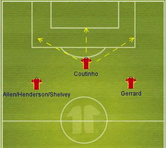 This third selection isnai??i??t really meant for 90-minute games, especially in the Premier League. If Liverpool have a comfortable lead, then definitely Lucas will come on in place of Coutinho to balance the books. On the contrary, if the Reds need further firepower, Coutinho will be moved to one of the three roles ahead (replacing Downing/Sterling), allowing Gerrard, Allen and a third player to take charge, depending on what the situation demands.