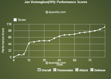 Jan Vertonghen produced a brilliant performance at the back for Tottenham in this game. The big defender not only scored the opening goal of the game with a good header, he was also kept busy by the Sheriff attackers though out the game. He along with Vlad Chiriches helped in Spurs maintaining their third clean sheet in a row in this competition. The above graph, depicts his performance in the match.