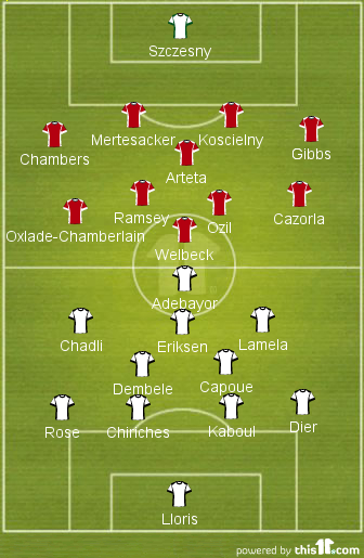 Possible Starting Line-up (4-1-4-1): Szczesny (GK), Chambers, Mertesacker, Koscielny, Gibbs; Ramsey, Arteta; Oxlade-Chamberlain, Ozil, Cazorla, Welbeck