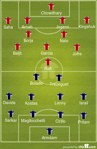Probable Starting XI (4-4-2):Ai??Arindam, Pritam Kotal, Bruno Cirillo, Magllocchetti, Sarkar, Lenny Rodriguez, Kostas Kastarounis, Israil Gurung, Davide Colomba, David Trezeguet, Bolado.