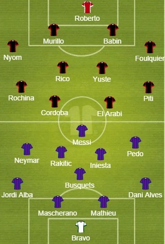 Expected Starting Line-Up: Bravo; Mathieu, Mascherano, Dani Alves, Jordi Alba; Busquets, Rakitic, Iniesta, Neymar, Pedro; Messi