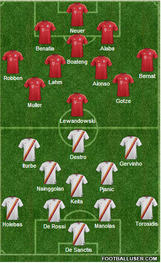 Daniele De Rossi was rested against Napoli as Rudi Garcia wanted his vice-captain to be fully fit for this crucial clash. Roma were run ragged by the Germans but De Rossiai??i??s inclusion could stem the rot. He will sit deep and try to stifle the free flowing movements of Bayern. Tough task ahead for Roma but if anyone can inspire them on Wednesday, then it has to be Danielino.