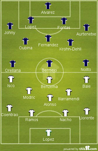 Probable Line-Up (4-3-3): Alvarez (GK); Johny, Lopez, Fontas, Aurtenetxe; Fernandez, Oubina, Krohn-Dehli; Orellana, Bermejo, Nolito
