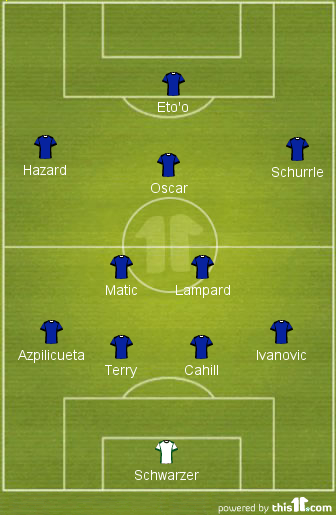 Expected line up (4-2-3-1):Ai??Schwarzer (GK), Azpilicueta, Terry, Cahill, Ivanovic; Matic, Lampard; Schurrle, Oscar, Hazard; Eto’o