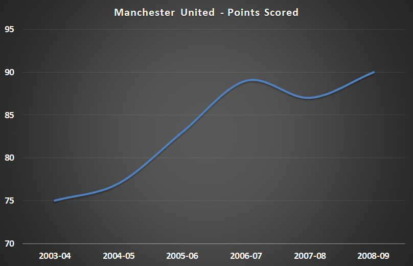 Look at their formative years (18 to 24 years of age)! During his six seasons (2003-04 to 2008-09 season) in Manchester United, Ronaldo helped the team to gain more and more league points and trophies. In these six seasons, he has helped the team to win 3 back to back league titles and a Champions league. In the same time for Messi (2005-06 to 2010-11 season), Lionel Messi helped FC Barcelona win 3 consecutive La Liga titles and 2 Champions League titles (Though Lionel Messi won Champions League in 2005-06 and La Liga title in 2004-05, Lionel Messi wasnai??i??t the key influencer or contributor). They both landed into Balon dai??i??Or scene around the same year 2007 (2nd and 3rd positions). Ever since 2008, with the exception of AndrAi??s Iniesta in 2010 (2nd position), both of them occupied the first two positions in Balon dai??i??Or race.
