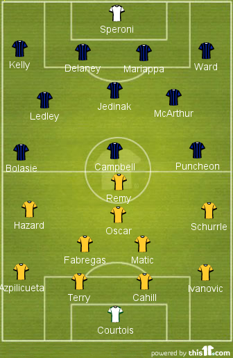 Possible lineup (4-3-3): Speroni (GK); Ward, Delaney, Mariappa, Kelly; Jedinak, Ledley, McArthur; Bolasie, Puncheon, Campbell