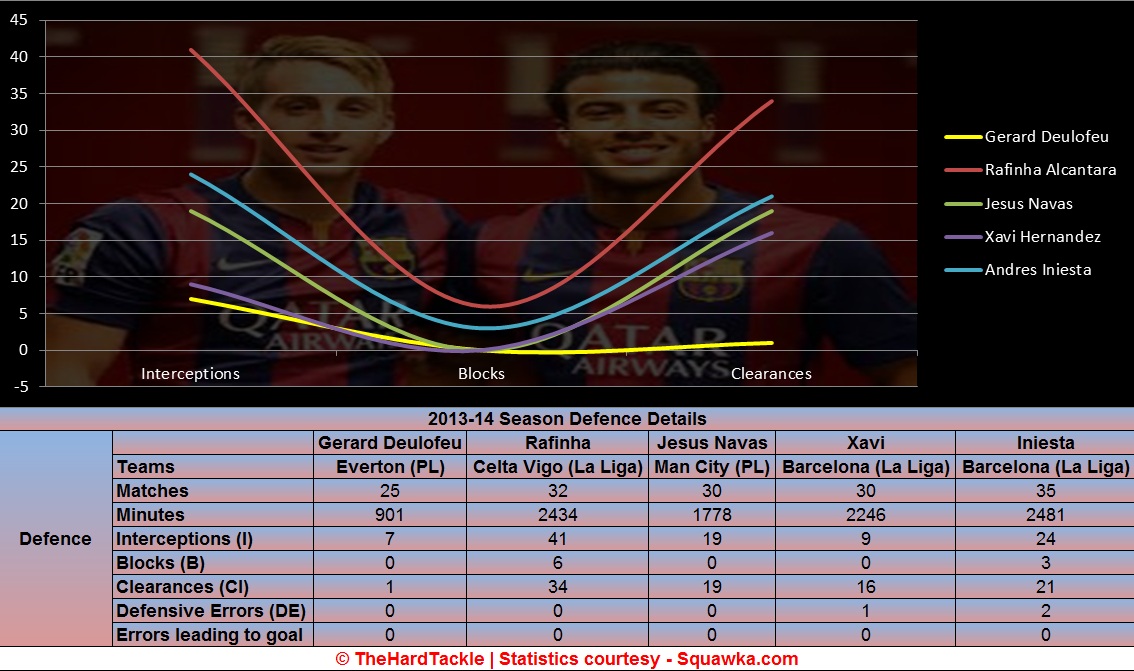 Yes, one can argue that Xavi, Iniesta, Navas and Deulofeu are players who ply their trade predominantly in the second and final third of the pitch and are not expected to contribute as much, but so does Rafinha and despite that he has a major contribution to defense ai??i?? exactly what Barcelona lacked last season and the season before that and such a player is an asset not only to Barcelona but for most clubs on the planet.