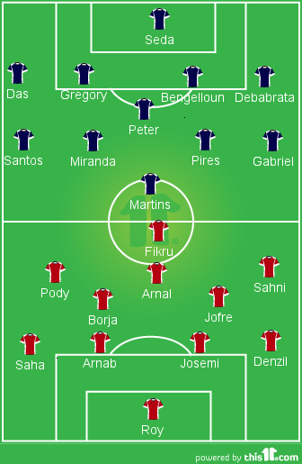 Probable Starting Lineup:Ai??Jan Seda, Debabrata Roy, Gregory Arnolin, Youness Bengelloun, Das, Peter Carvalho, Andre Santos, Clifford Miranda, Robert Pires, Gabriel, Ranti Martins