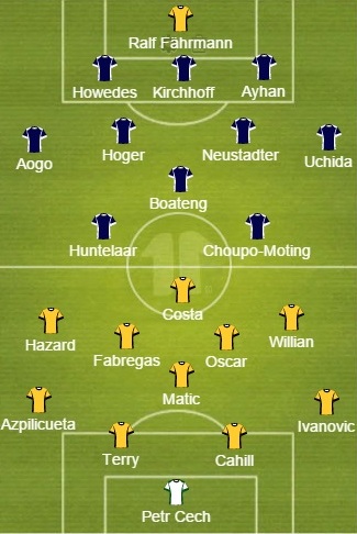 Matteo could opt for a 5-3-2 formation and try and neutralize Chelseaai??i??s ability to dictate the game. Ralf FAi??hrmann will stand between the posts for Schalke and is likely to be supported by Howedes, Kaan Ayhan and Kirchhoff in a 3-man defensive line up. They are expected to be supported by full backs Uchida and Dennis Aogo. Boateng is likely to lead the midfield and will be supported by Neustadter and Hoger with Huntelaar and Eric Maxim Choupo-Moting leading the teamai??i??s attack.