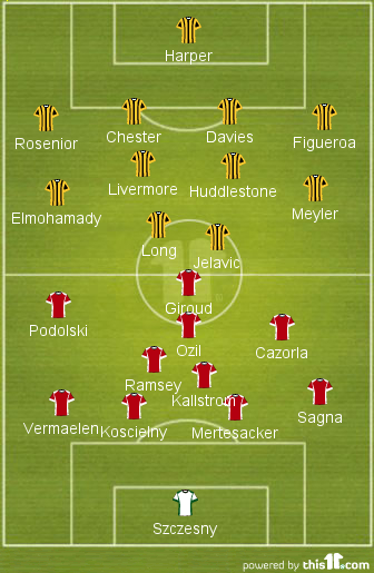 Possible Starting Lineup [4-4-2]:Ai??Harper (GK); Rosenior, Chester, Davies Figueroa; Elmohamady, Livermore, Huddlestone, Meyler; Long, Jelavic