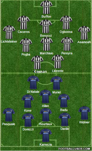 Probable Starting Line-up (3-5-2): Karnezis(GK); Danilo, Heurtaux, Domizzi; Kone, Pasquale, Widmer, Allan, Badu; Muriel, Di Natale