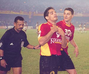 The former Santos and Corinthians midfielder heard about Indian football from Jose Ramirez Barreto and during his 5 year stint (East Bengal 2002-2005, Mohun Bagan 2006-2007) Douglas became the one of the biggest forces during derbies. When on song the temperamental Brazilian could do everything ai??i?? he could win tackles, move box to box and score from delicious free-kicks. By 2007 Douglas was past his prime but even then he scored the match winner for Mohun Bagan in a famous derby where Sepp Blatter was present. In another match from 2003 Douglas completely neutralized compatriots Barreto and Marcos Perreira as East Bengal ran out clear 3-0 winners.