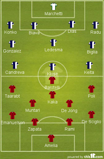 Antonio Candreva makes a return after serving a one game suspension and he should be a crucial addition to the three pronged attacking line. Miroslav Klose will continue to lead the line from the centre and he has a reason or two to feel confident to add to his scoring tally considering the defensive shenanigans so characteristic of Milan this season. Klose is potentially a huge aerial threat too and unless Milan have a properly chalked out defensive plan, which you might want to believe they wonai??i??t, to mark Klose out of the game completely, he isnai??i??t likely to let them escape unpunished.