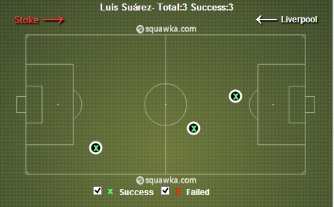 In the game against Stoke City, both Philippe Coutinho and Raheem Sterling only managed to win 2 tackles out of an attempted 6 each. Aly Cissokho had a torrid time against Jon Walters, and only won 2 out of his 7 attempted tackles. On the opposite flank, Glen Johnson won his solitary attempted tackle, but it has to be noted that 2 of the 3 Stoke goals originated from his flank. To really put these performances into perspective, it should be noted that in the same game, Luis Suarez won 3 out of 3 attempted tackles, including 2 in Liverpoolai??i??s own half. That is exactly the kind of commitment the others need to emulate.