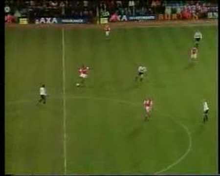 However soon Arsenal had an upper hand when Keane hacked down Overmars and got his marching orders and as expected Arsenal dominated the rest of the match against a 10 men Manchester United. United played defensively for rest of the match, which resulted in Arsenal struggling to find a breakthrough. Towards the end Overmars broke clear and Phil Neville tripped him resulting in a penalty. Bergkamp stepped up to take the penalty but Schemeichel guessed right and dived left to save the penalty. The match went into extra time. Arsenal failed to test the keeper again.