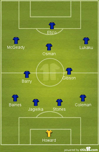 Probable Lineup (4-2-3-1): Howard; Baines, Jagielka, Stones, Coleman; Barry, Gibson; McGeady, Osman, Lukaku; Eto’o