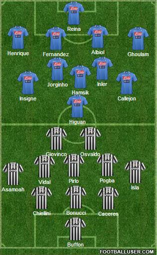 First choice left back Faouzi Ghoulam returns from suspension. Albiol will start alongside Frederico Fernandez at the heart of defence while Henrique who had a fine game on Wednesday will take up his unusual place on the right fullback position. Mesto and Juan Zuniga have started training after their long injury layoffs but are not fit enough to start such an important fixture. The double pivot midfield should see Inler start as the anchor man while Jorginho is expected to play a more supportive role to the Swiss man. Juventus should keep an eye on the long rangers from Inler as last year they were punished for offering him too much time and space.