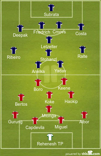 Probable Starting Lineup (4-1-3-2):Ai??Subrata Paul, Deepak Mondal, Manuel Friedrich, Pavel Cmovs, Peter Costa, Johan Letzelter, Lalrindika Ralte, Jan Stohanzl, Tiago Ribeiro, Abhishek Yadav, Nicolas Anelka