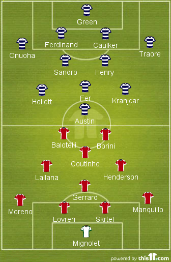 Probable Starting Line-up (4-2-3-1):Ai??Green(GK); Onuoha, Ferdinand, Caulker, Traore; Sandro, Henry; Hoilett, Fer, Kranjcar; Austin.
