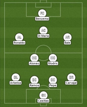 Expected Line-Up: Casillas, Pepe, Ramos, Arbeloa, Carvajal, Modric, Alonso, Di Maria, Bale, Ronaldo, Benzema