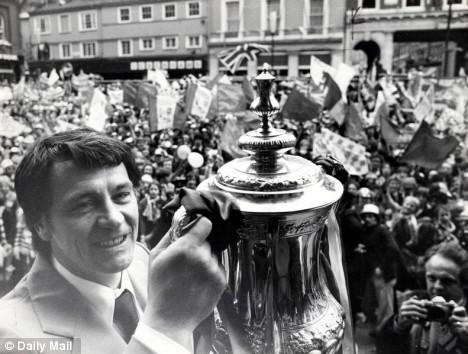 Robson holds the FA Cup aloft after winning the competition as manager of Ipswich Town