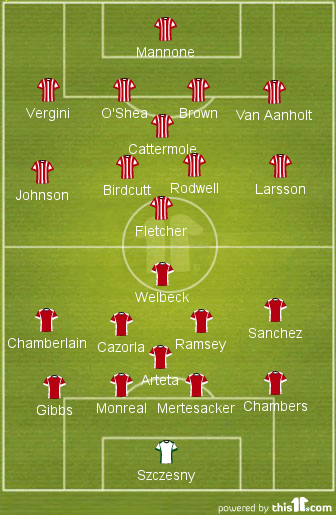 Possible Starting Lineup (4-1-4-1): Mannone (GK), Vergini, Oai??i??Shea, Brown, Van Aanholt; Cattermole; Johnson; Birdcutt, Rodwell, Larsson, Fletcher