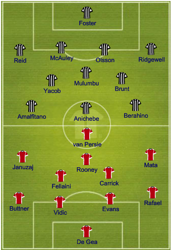Expected starting X1 (4-2-3-1): Foster (GK); Ridgewell, Olsson, McAuley, Reid; Yacob, Mulumbu; Brunt, Berahino, Amalfitano; Anichebe