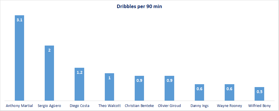 Barring Anthony Martial and Sergio AgA?ero, none of these strikers have had a good enough successful dribble statistic.