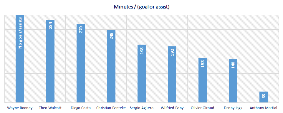 Wayne Rooney is the only striker from top 5 clubs without a goal or assist