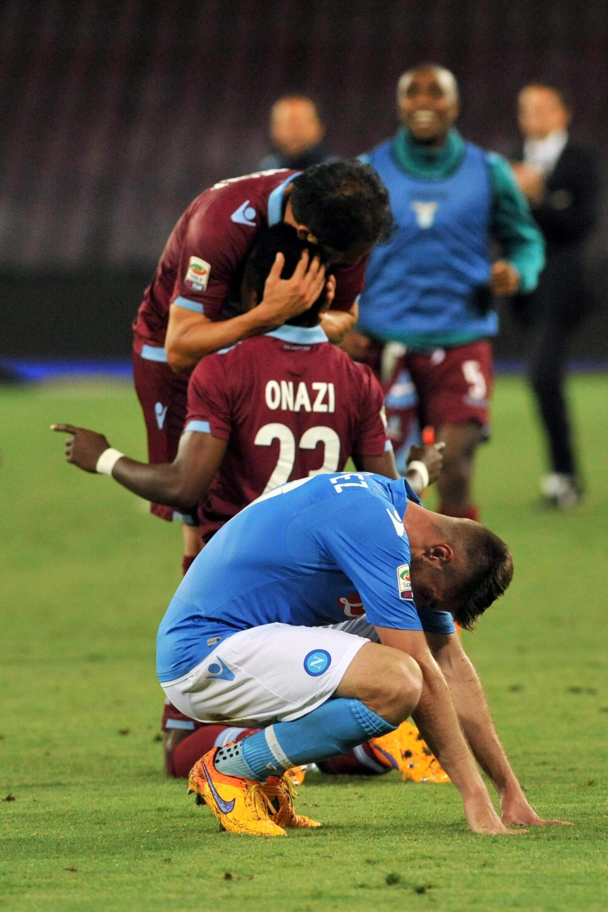Just as Napoli were on top, Ghoulam picked up two bookings within five minutes to level up the numbers with twenty minutes to play. Higuain wasted his chance to complete his hat-trick as Lulic fouled Christian Maggio in the box and the Argentine blazed the resulting penalty over the crossbar. Remarkably, Lazio retook the lead with five minutes to go as Onazi, with virtually his first touch, side footed home from the angle to silence the home supporters. To compound matters, in injury time Klose stooped to head home Cristian Ledesmaa s free kick to ensure that Lazio claimed the final Champions League spot.
