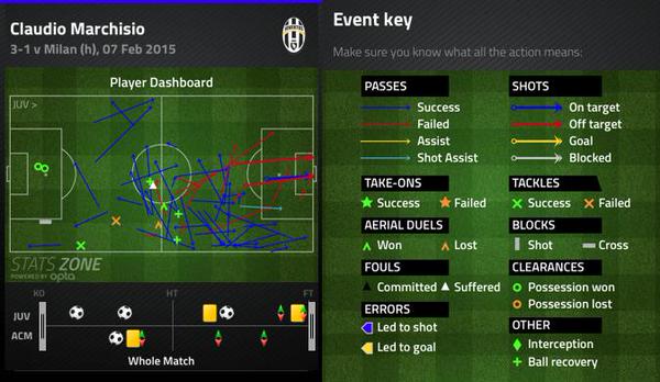 This game highlighted the importance of Marchisioa s presence in the side. Against Milan, he nearly found the back of the net on two occasions but saw both his efforts eventually lead to his teammatea s goals. On the night, the Juventus youth product completed 42 of his 54 passes and was all over the field.