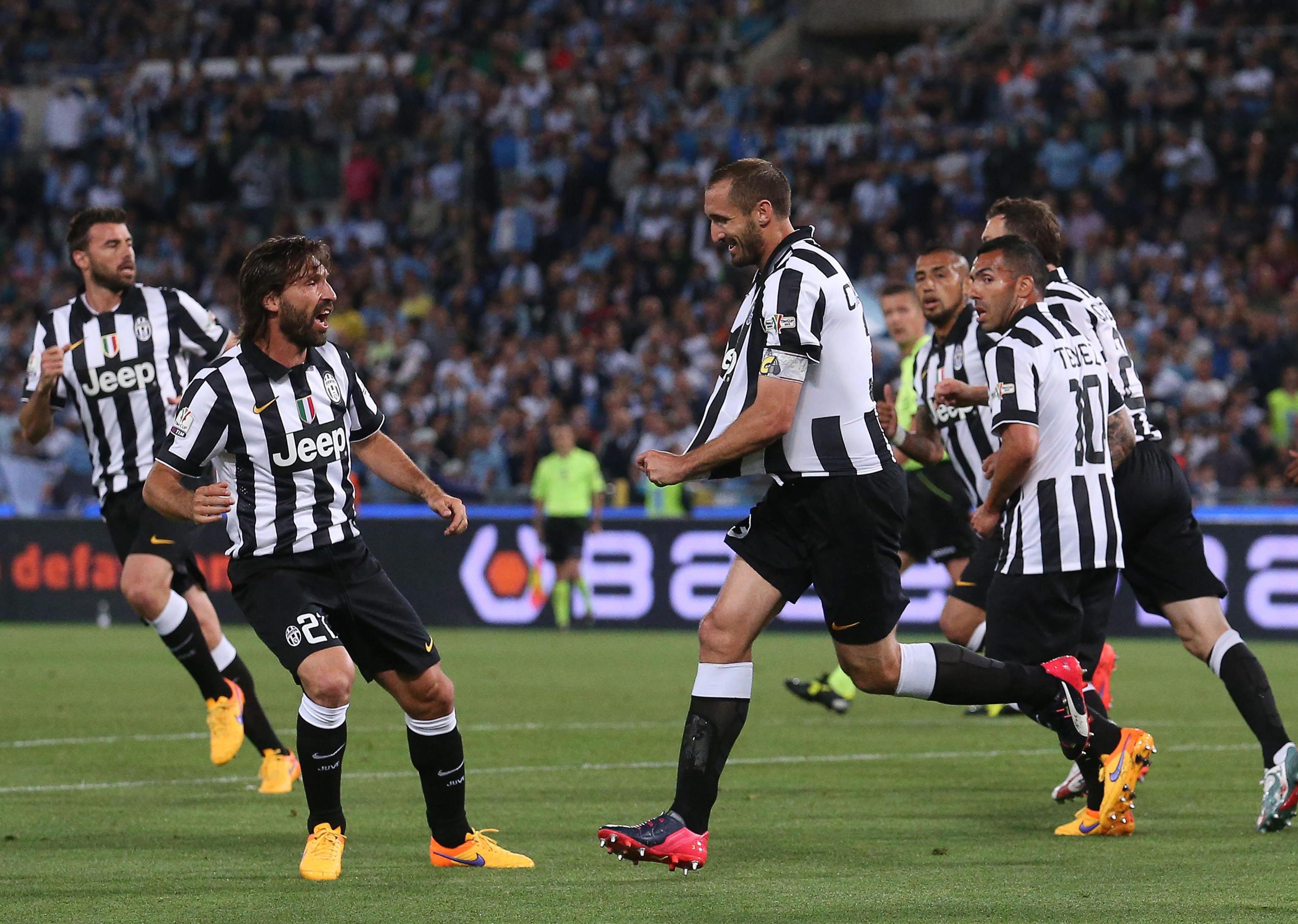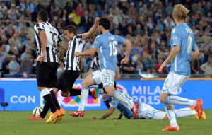 Juventus pulled level soon after. Andrea Pirlo’s free-kick was knocked down by Patrice Evra, leaving Chiellini to smash the ball from six yards and beat Berisha. In the 25th minute, Llorente headed Evra’s cross over the bar. Two minutes later and a fast counter-attack by Lazio saw Felipe Anderson sent Cataldi through on goal but his effort lacked pace and did not trouble Storari. Before the interval, Marco Parolo’s stinging drive from 25 yards went wide of the far post.