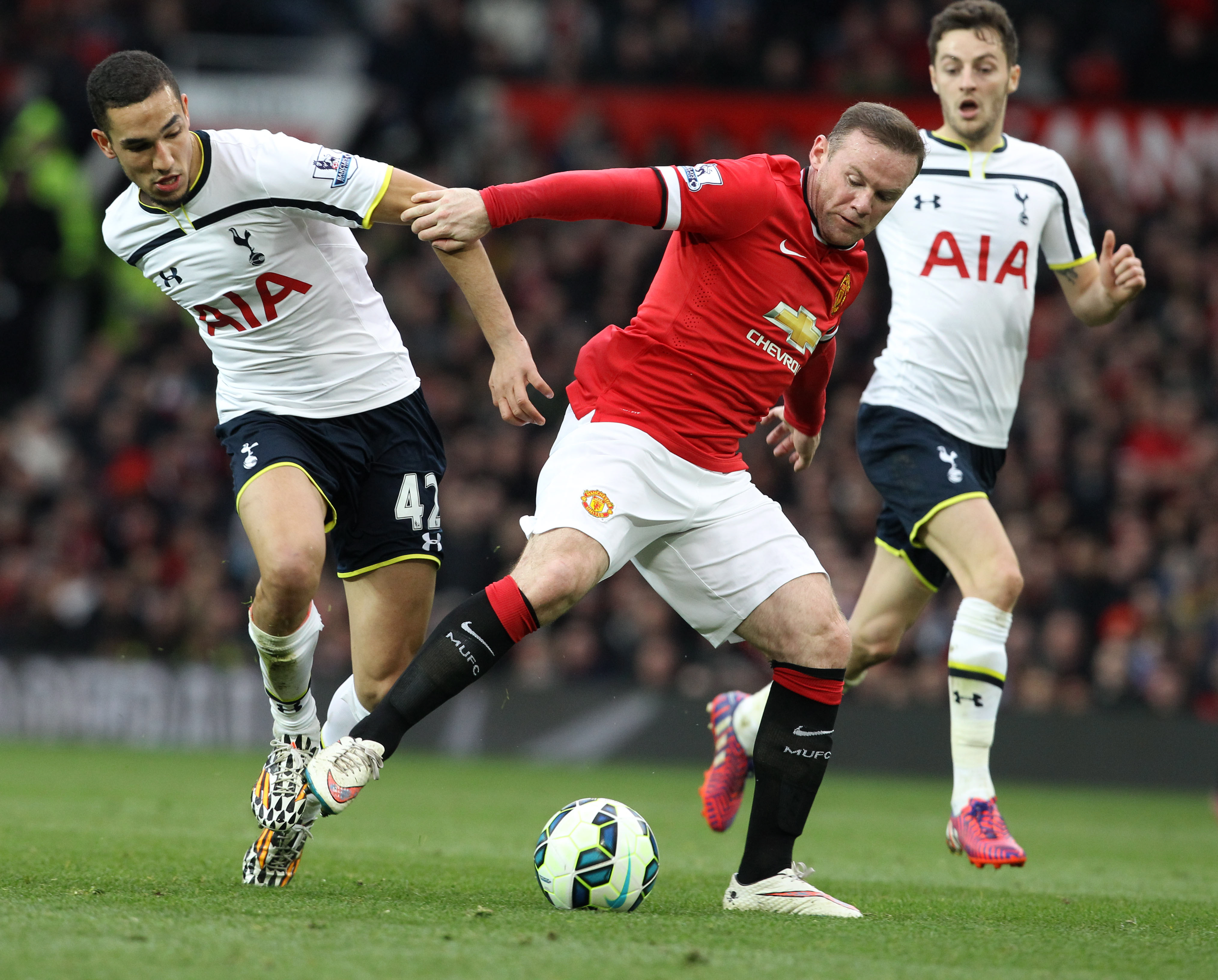 The visiting side played a 4-2-3-1 formation, very much similar to the team that played in the previous fixture against QPR. Only difference being the inclusion of Danny Rose instead of Ben Davies in left back. Manchester United on the other hand introduced Juan Mata, Jones and Carrick as they lost Di Maria and dropped Luke Shaw for the fixture. Van Gaal too fielded a 4-2-3-1 formation. With Valencia continuing at right back and surprisingly Daley Blind at left back. He also played Fellaini at the number ten position while Carrick and Hererra played the two deep midfielders.