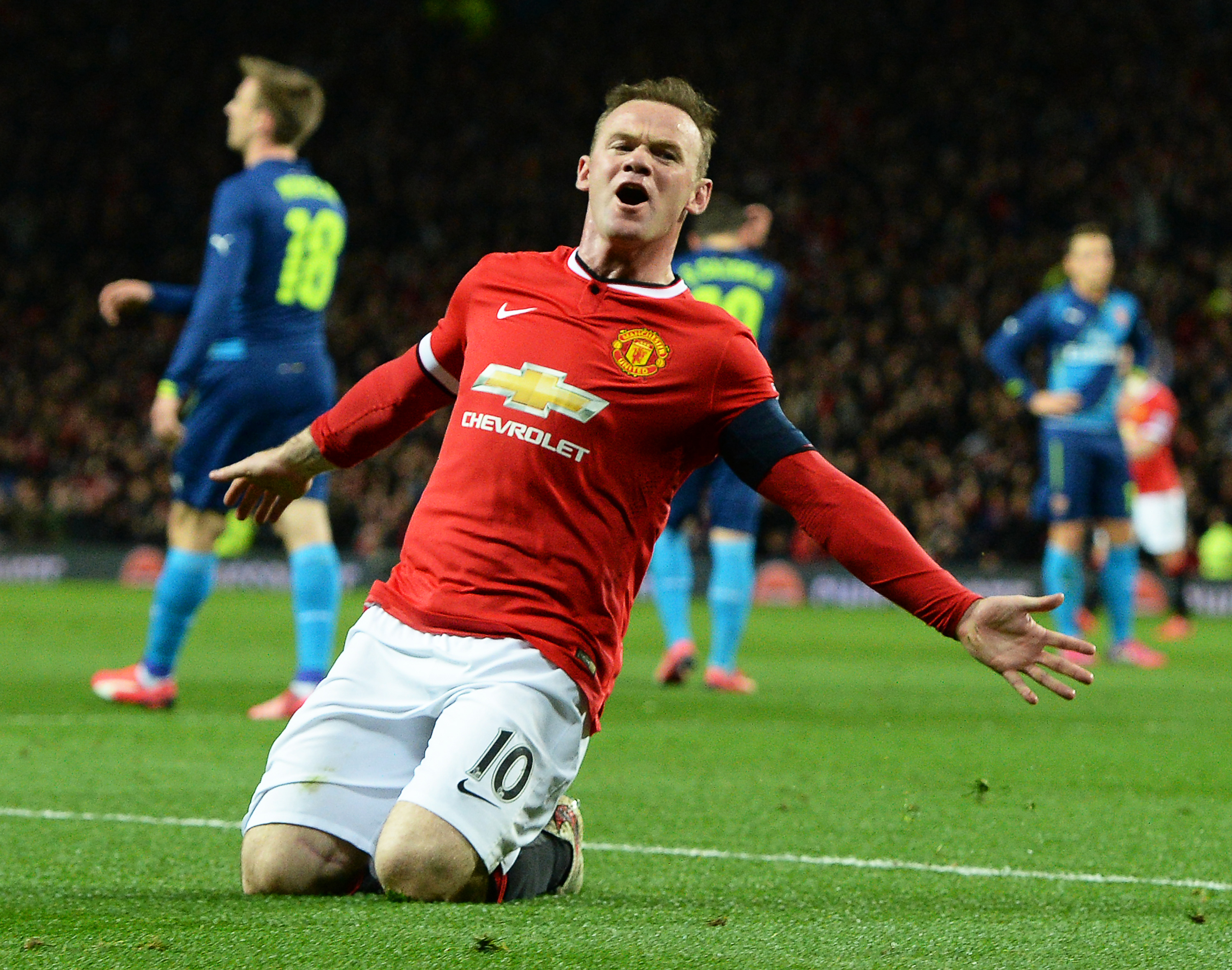 The lead did not last long, as the Red Devilsa captain, Wayne Rooney, nodded home an Angel di Maria cross to rack up his 14th goal against Arsenal FC.