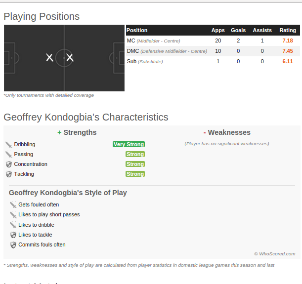Geoffrey Kondogbia’s profile @whoscored