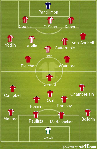 Predicted Line-ups (4-2-3-1): Cech; Monreal, Paulista, Mertesacker, Bellerin; Ramsey, Flamini; Chamberlain, Ozil, Campbell; Giroud.