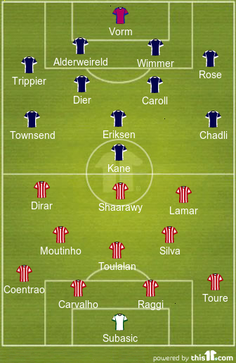 Predicted Line-up: Vorm, Trippier, Alderweireld, Wimmer, Rose; Dier, Caroll, Townsend, Erisken, Chadli; Kane;