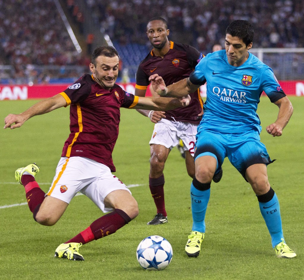 Barcelonaa s Uruguayan striker Luis Suarez had given them the lead in the 21st minute when he headed in Ivan Rakitica s deflected cross from close range, before Florenzi equalized for the Romans 10 minutes later.