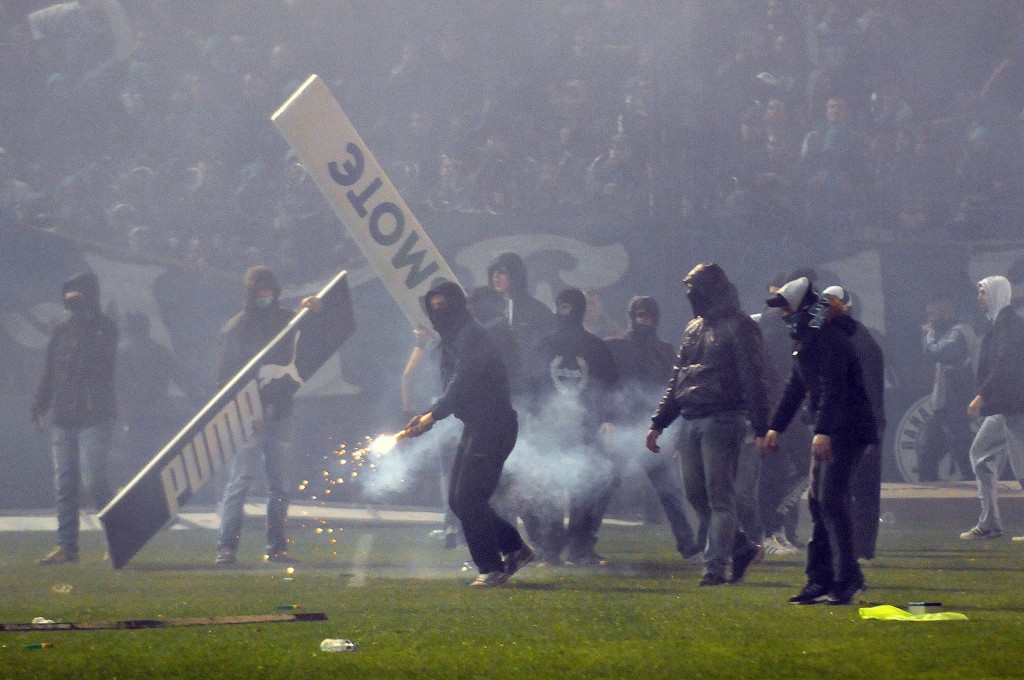 The Athens derby between Panathinaikos and Olympiakos on Saturday was called off before kick-off because of violence in the Greek capital.Referee Andreas Pappas made the decision 30 minutes after the Super League match was due to start after taking into account the violence both inside and outside the Apostolos Nikolaidis Stadium. Immediately after the decision was announced to the spectators, dozens of fans rushed onto the pitch and fought with riot-trained police. Police used tear gas and fans threw flares onto the pitch, causing a choking atmosphere for the sold-out crowd of 23,000. Many plastic seats were destroyed inside the stadium and thrown onto the field by unhappy fans, while a handful of small fires were also set off. Police said at least five people were arrested and there were a number of injuries reported. . Two hours before the scheduled 1730 GMT kick-off unruly Panathinaikos fans fought with police stationed outside the stadium. The fans threw rocks and other debris at police who in turn responded with tear gas to put a halt to the violence after 10 minutes. Police also clashed briefly with fans inside the stadium near the players’ entrance tunnel. One police officer was taken to the hospital after being struck with a plastic chair thrown from the stands. The appearance of the visiting Olympiakos players on the pitch then prompted four flares to be thrown towards them by fans. Olympiakos vice-president Savvas Theodoridis told the Greek cable television network Nova, which was broadcasting the match live, that “the new law is clear, the match should not be played. We do not play in a jungle”. Theodoridis said flares thrown by the fans during the warm-up struck Olympiakos forward Alfred Finnbogason, “burning” the Iceland international’s hand, and Serbian midfielder Luka Milivojevic. Olympiakos quickly returned to the dressing rooms after the flares were thrown. Panathinaikos are likely to be punished heavily with Olympiakos in line to be awarded a 3-0 win, as well as the home side facing a possible points beind deduction and heavy fine. The visitors top the table with 30 points after winning their first 10 matches and entered Saturday’s contest eight points clear of second-place Panathinaikos. By AFP |