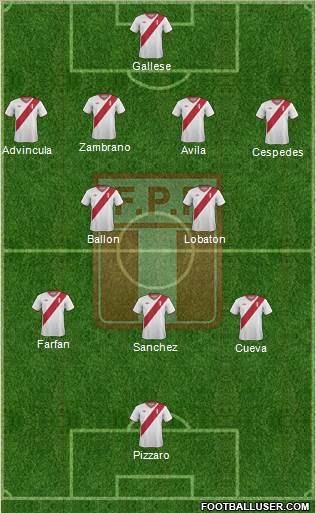 Probable Starting Lineup: Gallese (GK), Zambrano, Advincula, Avila, Cespedes, Ballon, Lobaton, Cueva, Farfan, Sanchez, Pizzaro