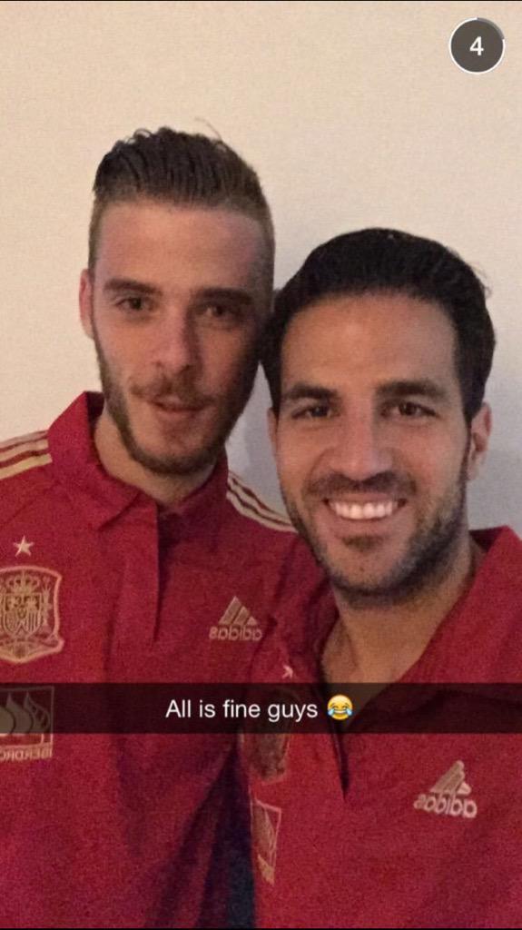 Following the match, Cesc Fabregas posted a picture on Snapchat alongside De Gea to quash the rumours of an alleged bust up between the two. The Chelsea FC midfielder also captioned the post “All is fine guys”.
