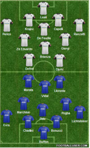 Probable Starting Line-up (4-3-1-2):Buffon(Gk); Lichtsteiner, Bonucci, Chiellini, Evra; Marchisio, Pirlo, Pogba; Vidal; Llorente, Morata