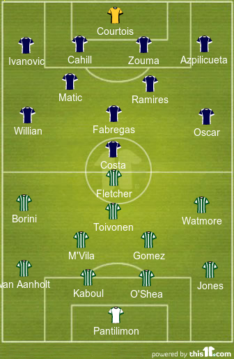 They will be expected to line up in a 4-2-3-1 formation with Jordi Gomez and Yann Ma Vila in front of the 4-man defence — a defence that has conceded 30 goals so far in the season at an average of 2 goals per game. On the attacking front too, there has been a considerable lack of action. Steven Fletcher, who is expected to lead the line in attack this match, has just 4 goals to his name so far this season. Any chance they have against Chelsea is likely to come from a strong counter-attack play, given their opponents troubles at the defensive end.